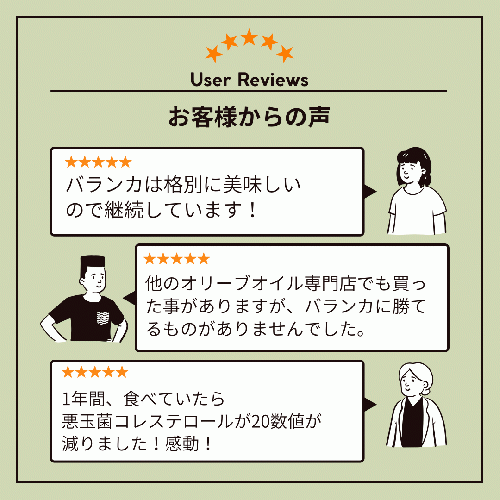 手積みにて収穫後5時間以内にコールドプレス製法(低温圧搾28度以下)にて、ノンフィルターで搾油し、15度に温度管理されたステンレス製タンクで貯蔵を行っています。